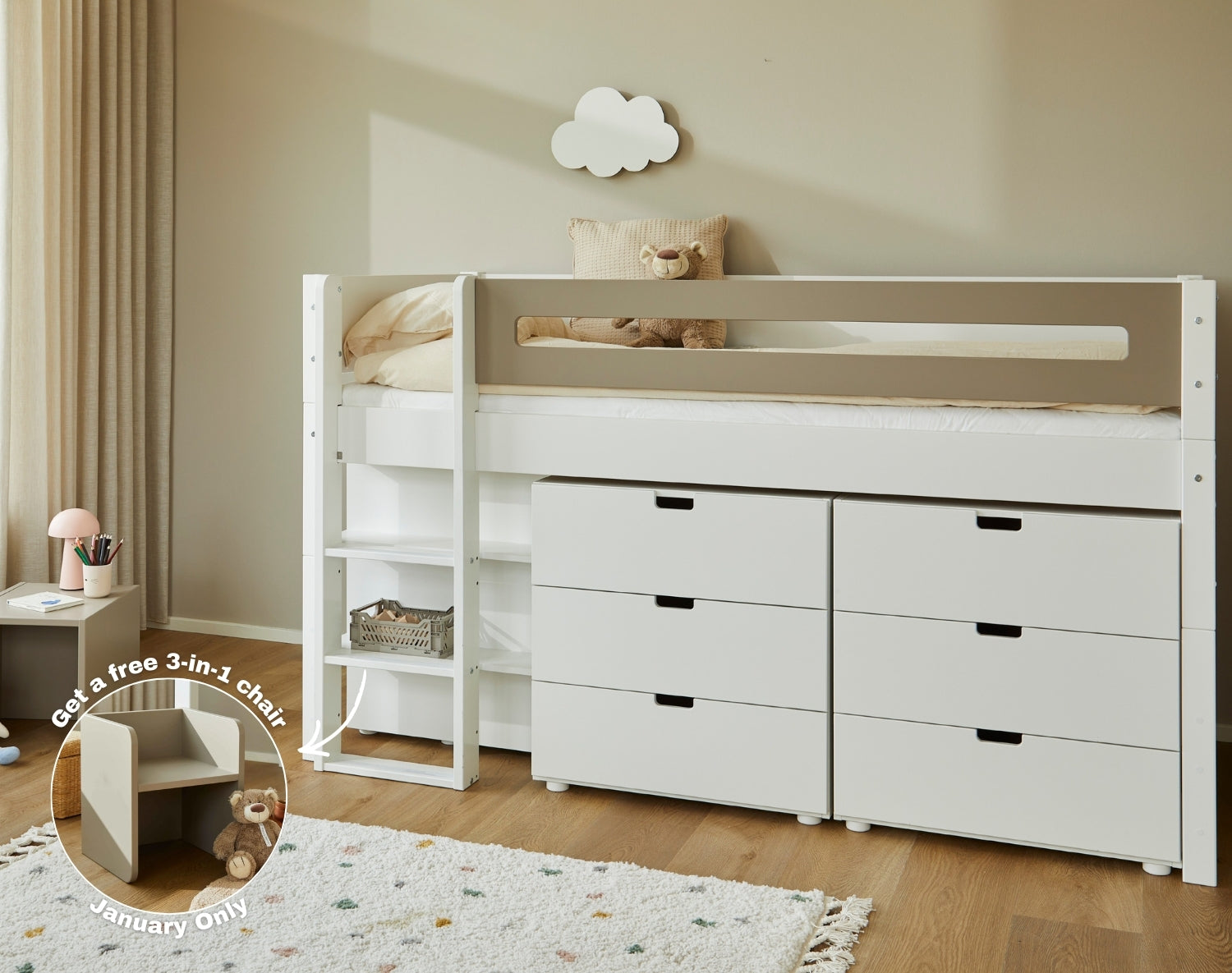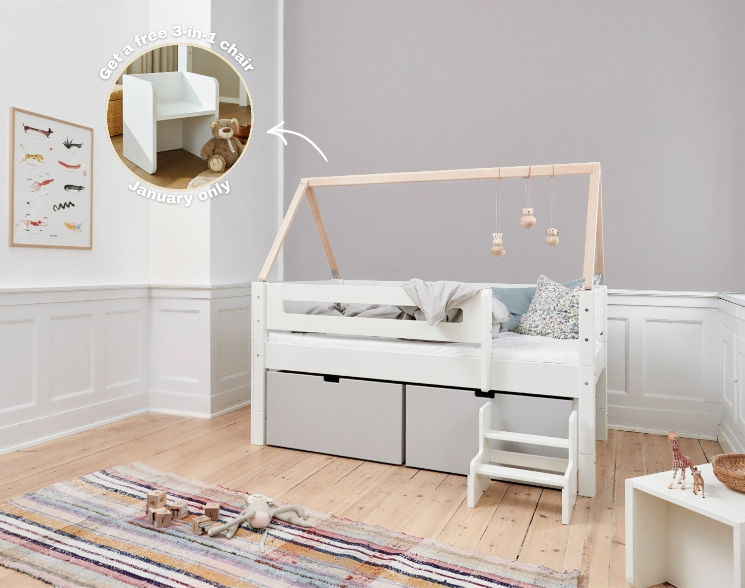 Kaufen Sie ein Bett mit Stauraum – und erhalten Sie im Januar einen kostenlosen 3-in-1-Stuhl ☃️