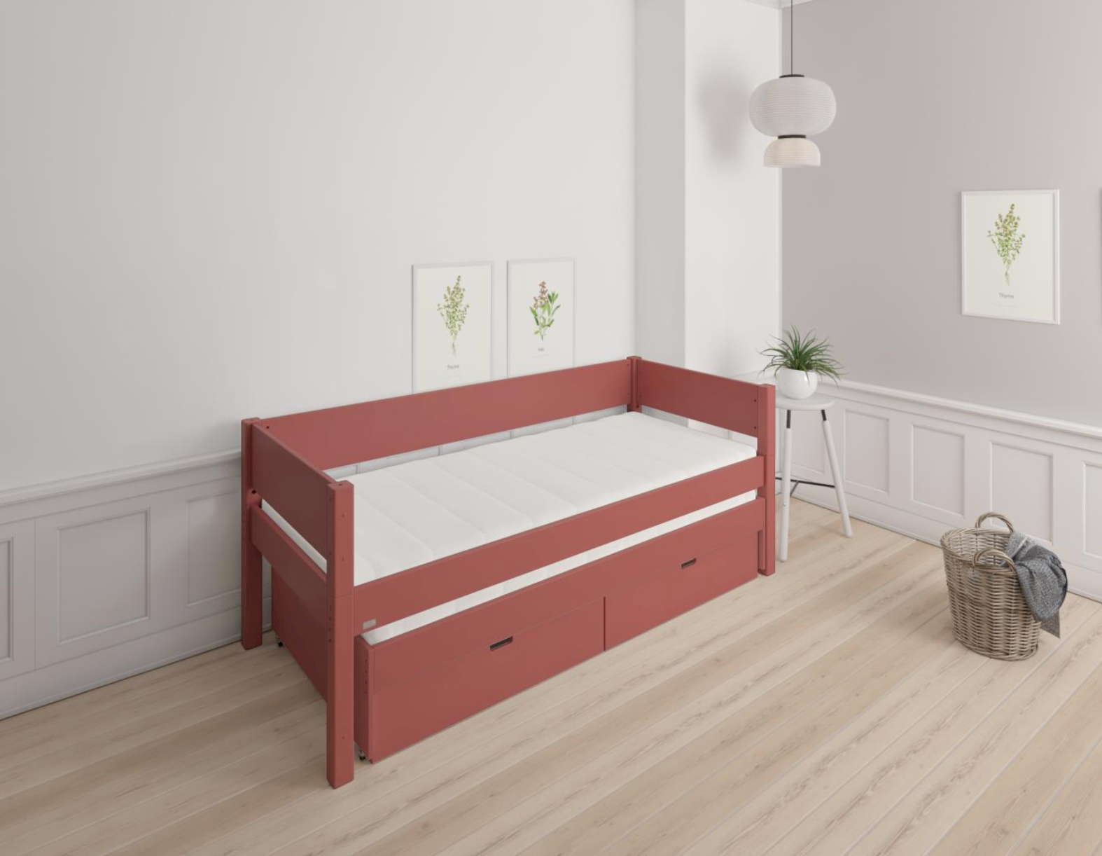 Luna Ausziehbett mit Schubladen - Ausziehbett mit Schubladen - 90*200cm - Rostrot - 35
