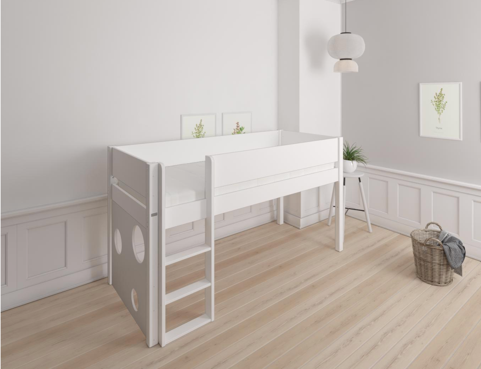Sol halbhohes Kinderbett mit Ballboard - hohes Kinderbett mit Ballboard - 90*160cm - Schneeweiß - 11