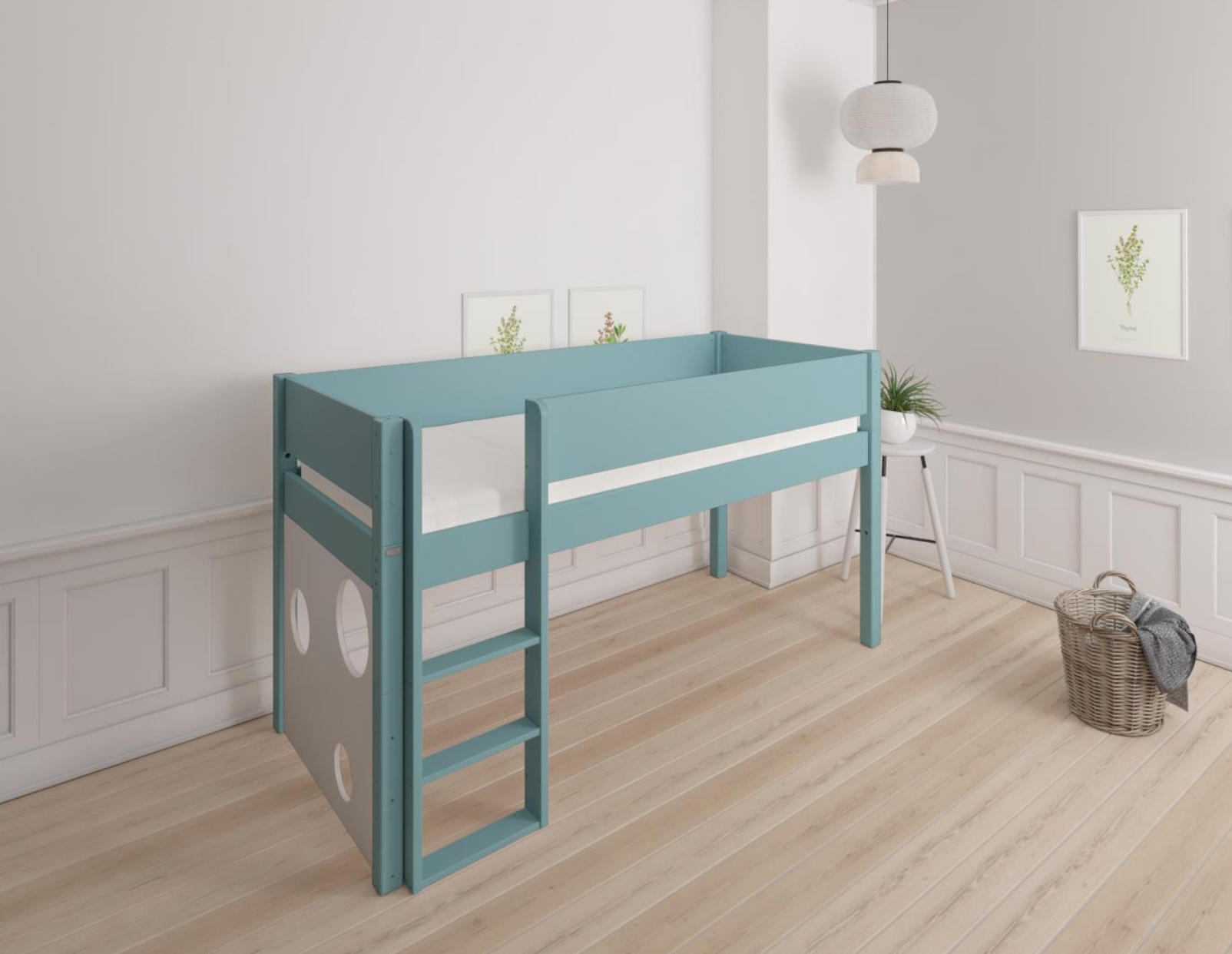 Sol halbhohes Kinderbett mit Ballboard - hohes Kinderbett mit Ballboard - 90*160cm - Petrol - 40