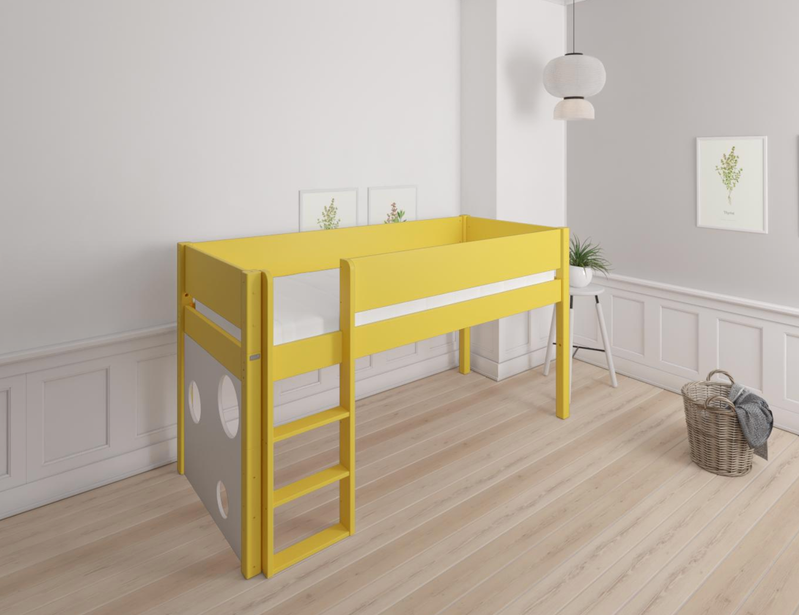 Sol halbhohes Kinderbett mit Ballboard - hohes Kinderbett mit Ballboard - 90*200cm - Currygelb - 43