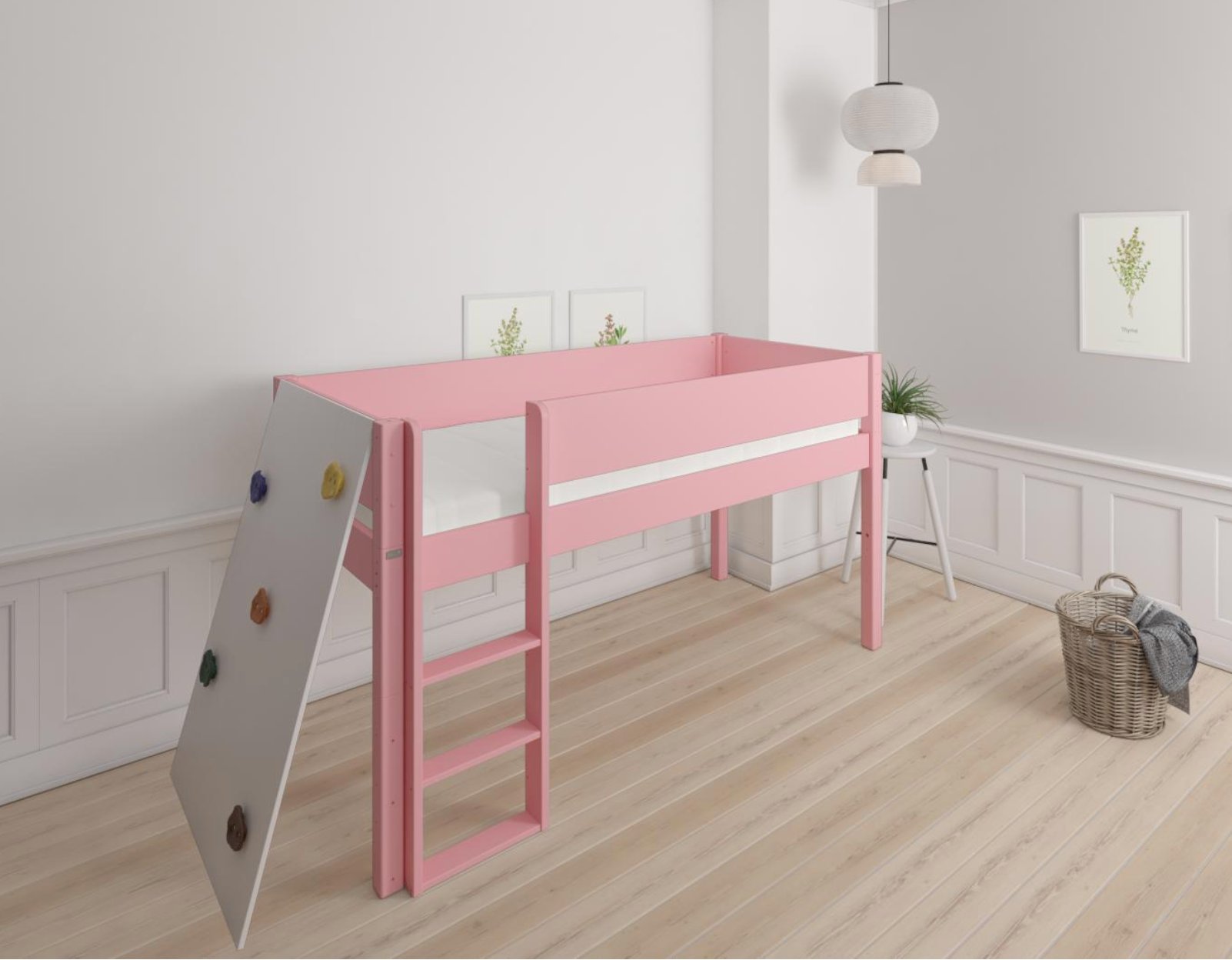 Borr halbhohes Kinderbett mit Kletterwand - Hochbett mit Kletterwand - 90*160cm - Hellrosa - 24