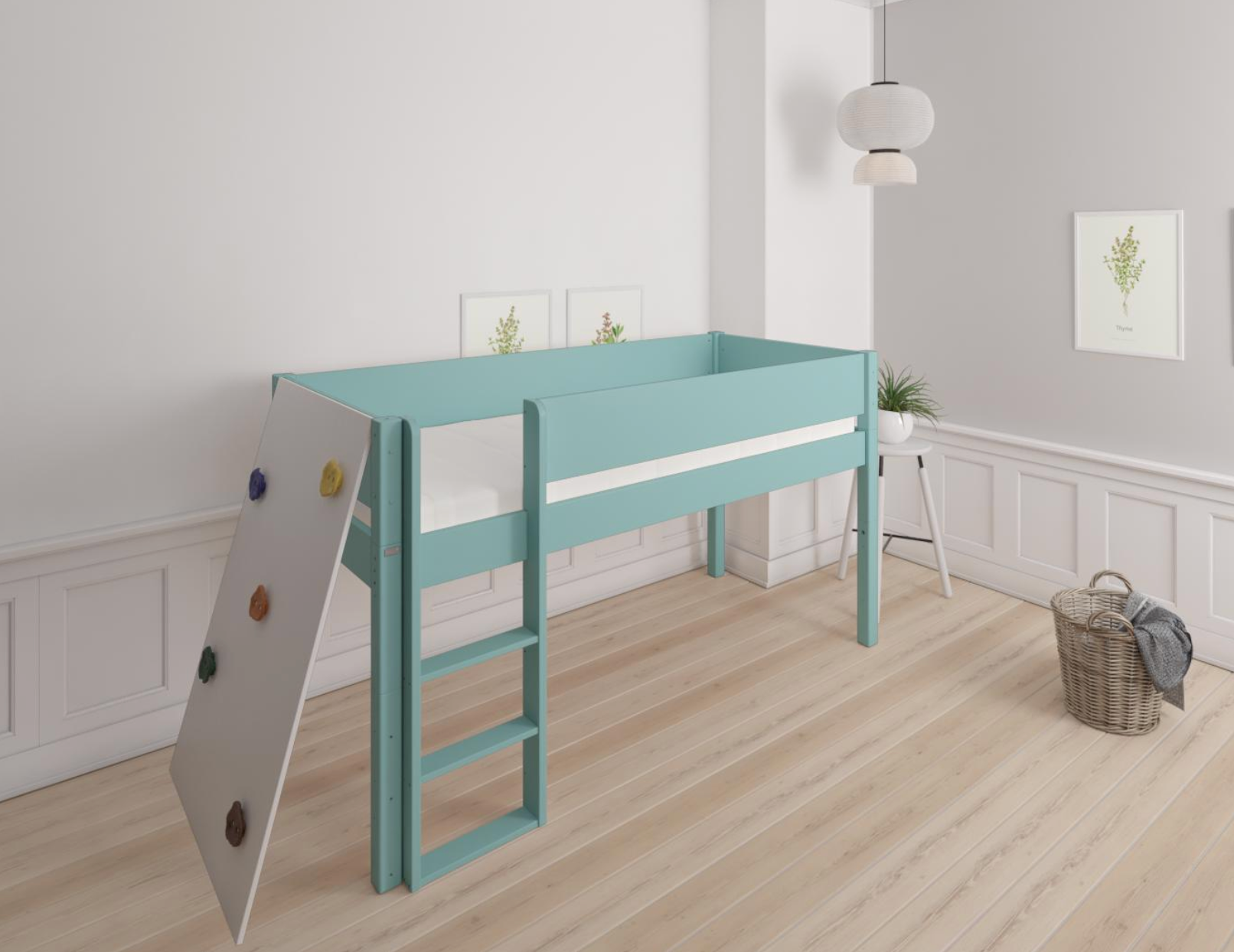 Borr halbhohes Kinderbett mit Kletterwand - Hochbett mit Kletterwand - 90*160cm - Mintblau - 42