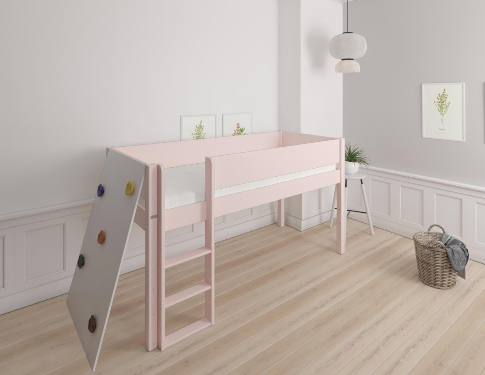 Borr halbhohes Kinderbett mit Kletterwand - Hochbett mit Kletterwand - 90*200cm - Hellrosa - 24