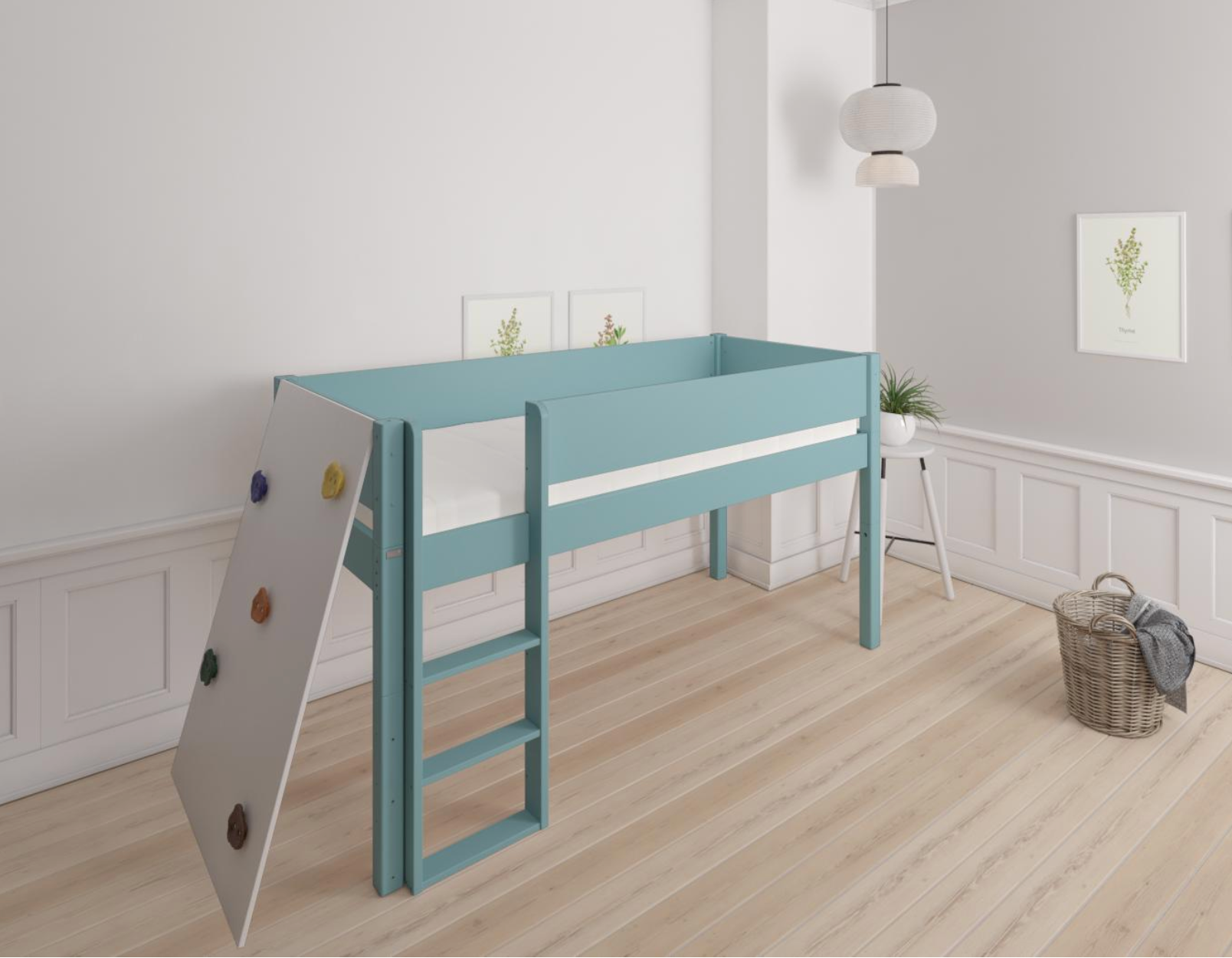 Borr halbhohes Kinderbett mit Kletterwand - Hochbett mit Kletterwand - 90*200cm - Mintblau - 42