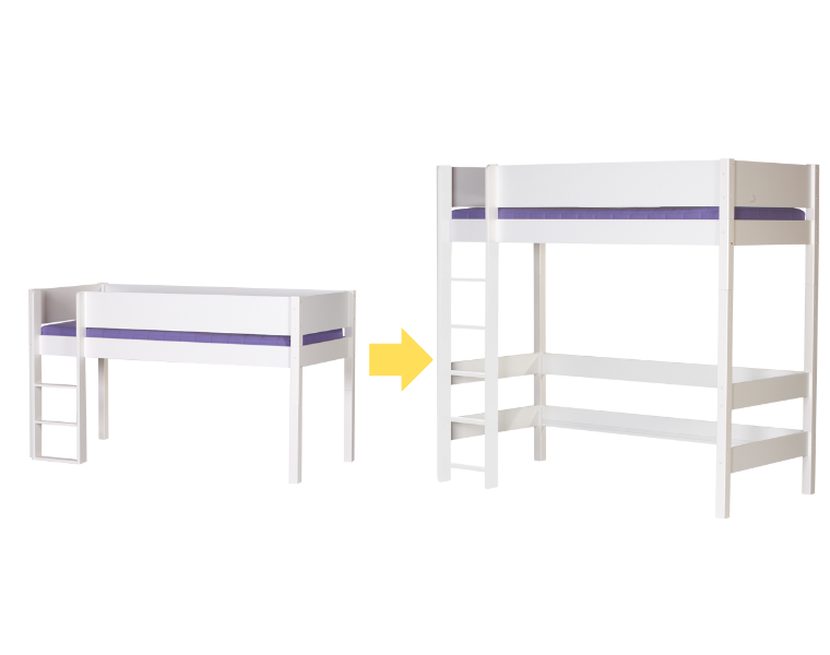 Unser modulares Bettsystem wurde dafür entwickelt, dein Kind über viele Jahre hinweg zu begleiten – vom Juniorbett bis hin zum halbhohen Bett, Hochbett oder Etagenbett.
