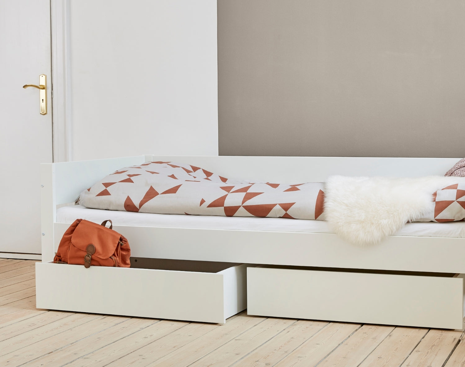 Sie schaffen Ordnung im Alltag und geben dem Kind einfachen Zugriff auf seine Sachen – eine praktische und flexible Lösung für jedes Kinderzimmer. Bettschubladen von Manis-h sind daher mehr als nur Stauraum – sie sind ein durchdachtes Designelement, das das Kinderzimmer funktional, ordentlich und inspirierend macht.