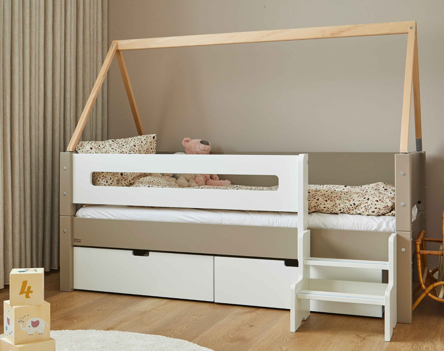 Unsere Möbel werden in Dänemark aus strapazierfähigen, umweltfreundlichen Materialien gefertigt und sind in zeitlosen Farben erhältlich. So kannst du ein Zimmer gestalten, das praktisch, sicher und inspirierend zugleich ist.