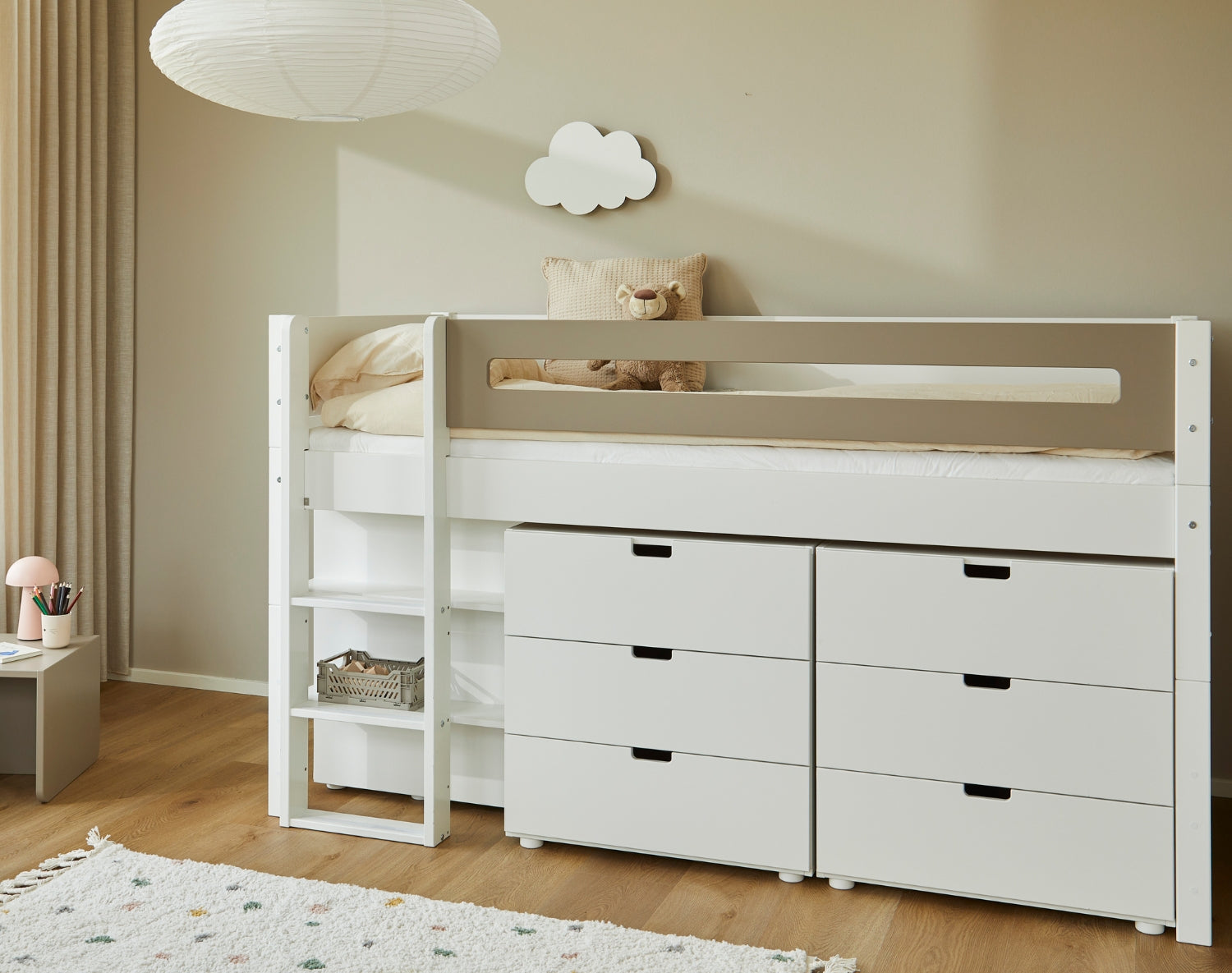 Wenn Kinder älter werden, ändern sich ihre Bedürfnisse und ihr Stil. Hier finden Sie Möbel für Schulkinder und Jugendliche – funktional, langlebig und mit einem ruhigen Ausdruck, der sich ins Zuhause einfügt. Von geräumigen Kinderbetten und Schreibtischen bis hin zu cleverer Aufbewahrung – alles ist darauf ausgelegt, Ihr Kind durch die Schulzeit und bis ins Jugendalter zu begleiten. Qualität, Komfort und Design in perfekter Balance – für große Kinder, die noch immer einen sicheren Raum lieben.