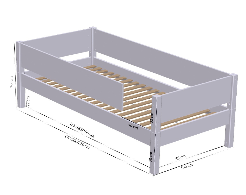 - Achten Sie auf die Matratzenhöhe im Verhältnis zum Bettgitter/zur Bettseite – wir weisen deutlich darauf hin, damit Ihr Kind immer sicher schläft.