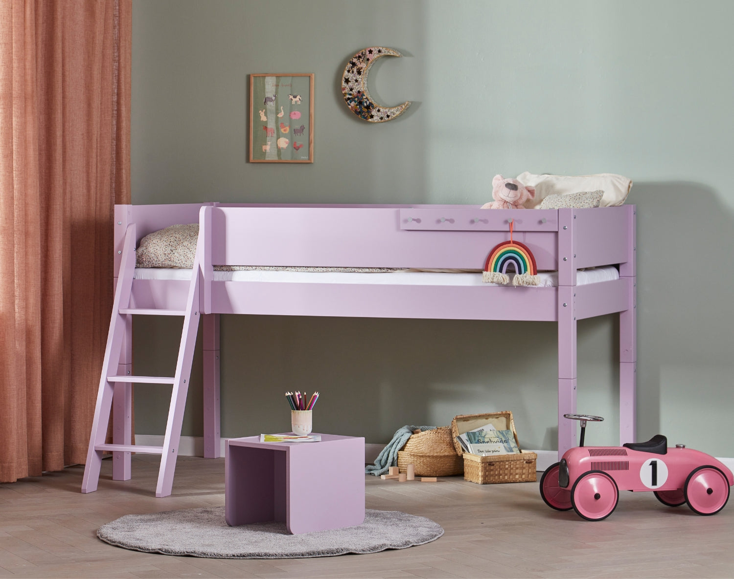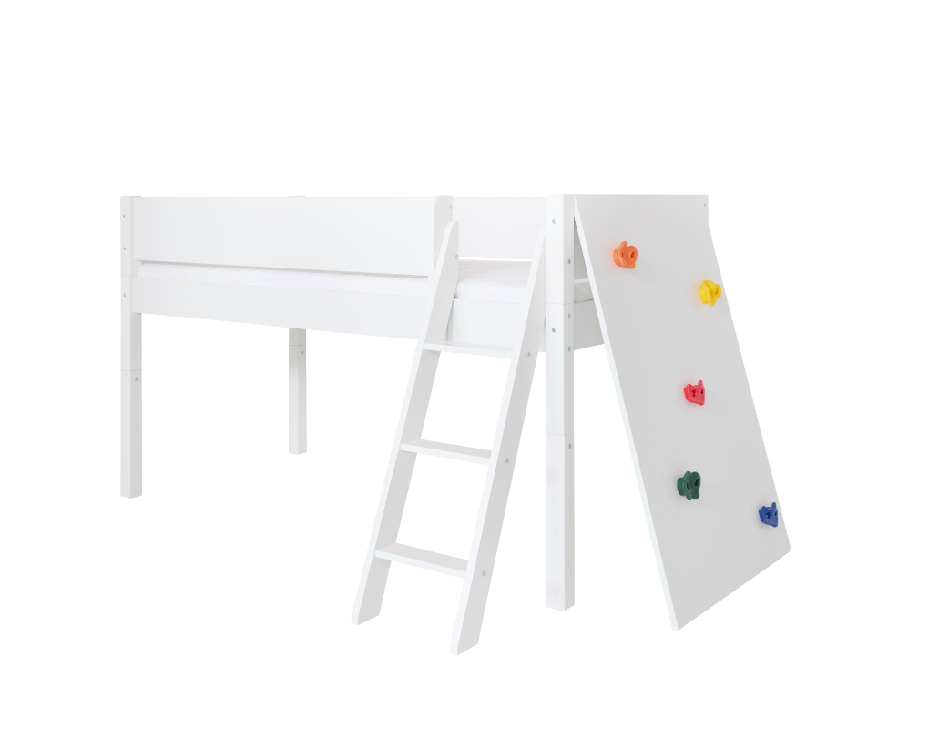 Borr ist ein halbhohes Designerbett, das mit einer Kletterwand und einem 3/4-Bettgitter ausgestattet ist – Sie können zwischen 3 verschiedenen Designs wählen.