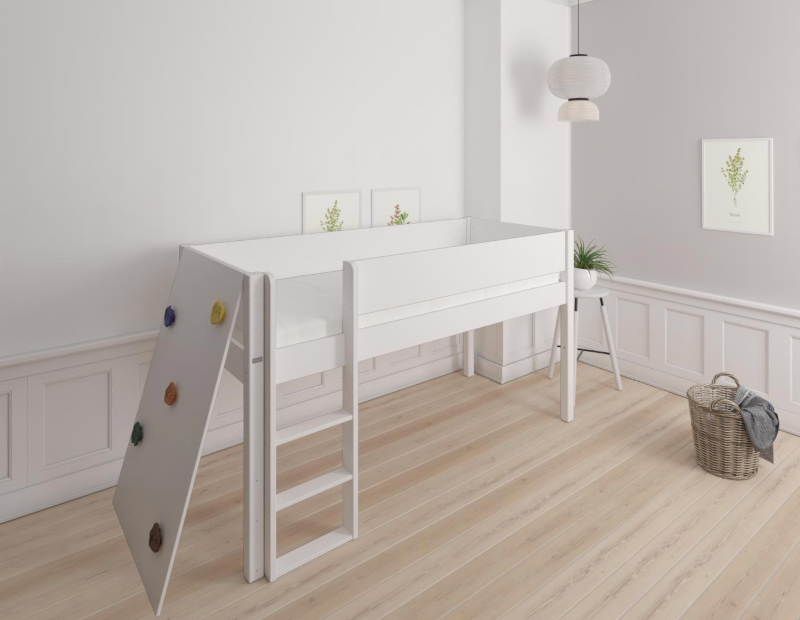Borr halbhohes Kinderbett mit Kletterwand - Hochbett mit Kletterwand - 90*160cm - Weiß - 1