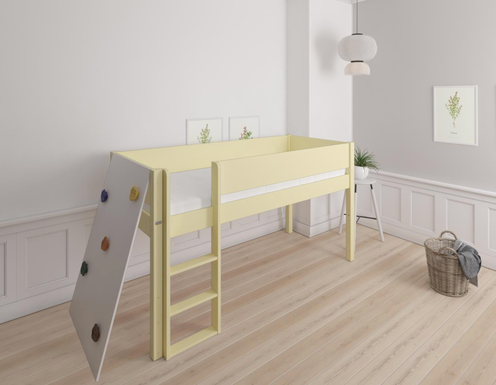 Borr halbhohes Kinderbett mit Kletterwand - Hochbett mit Kletterwand - 90*200cm - Sonnengelb - 44