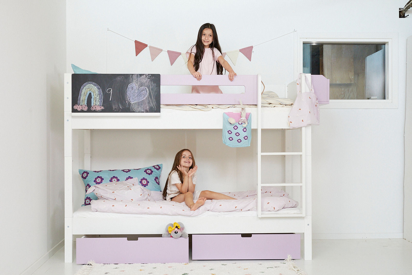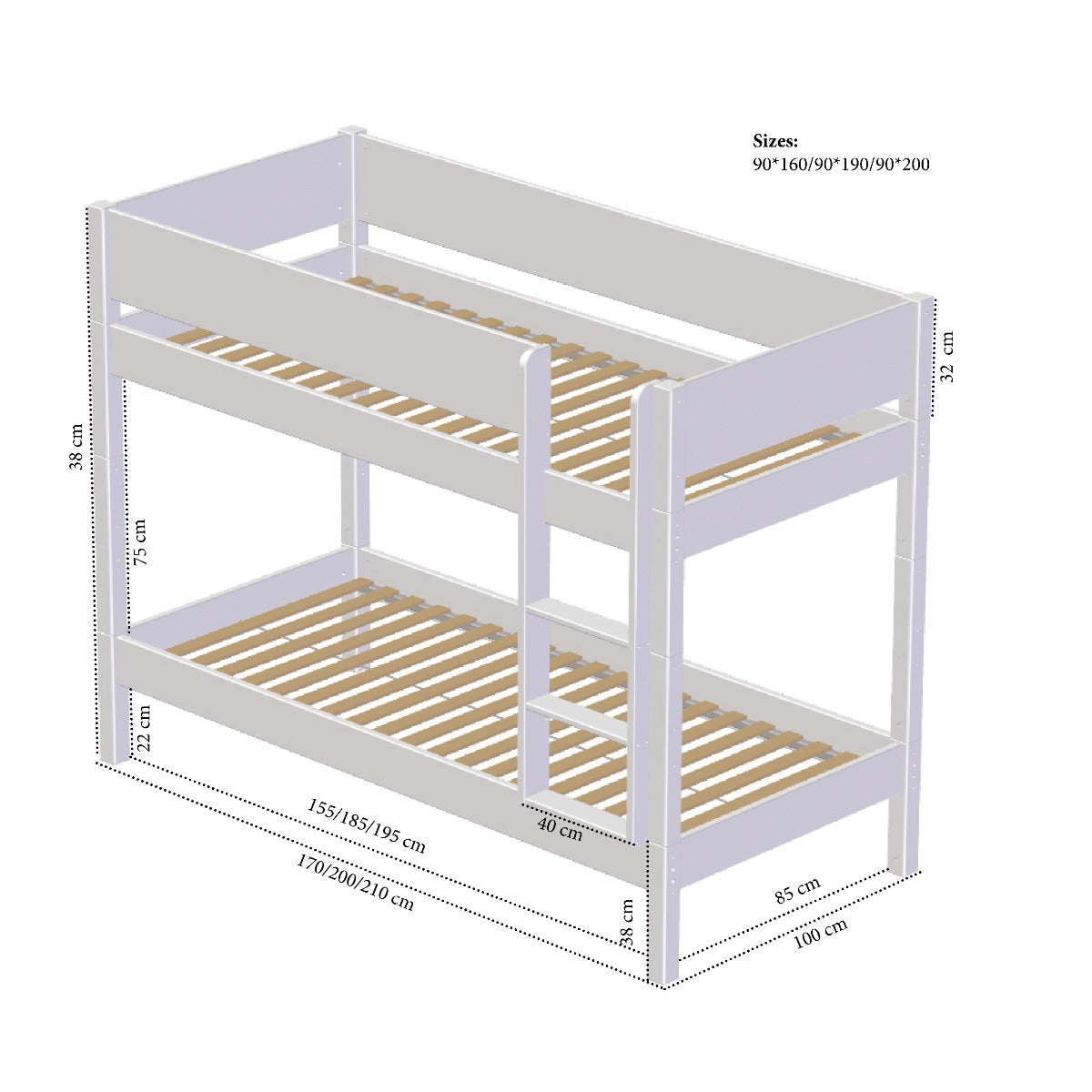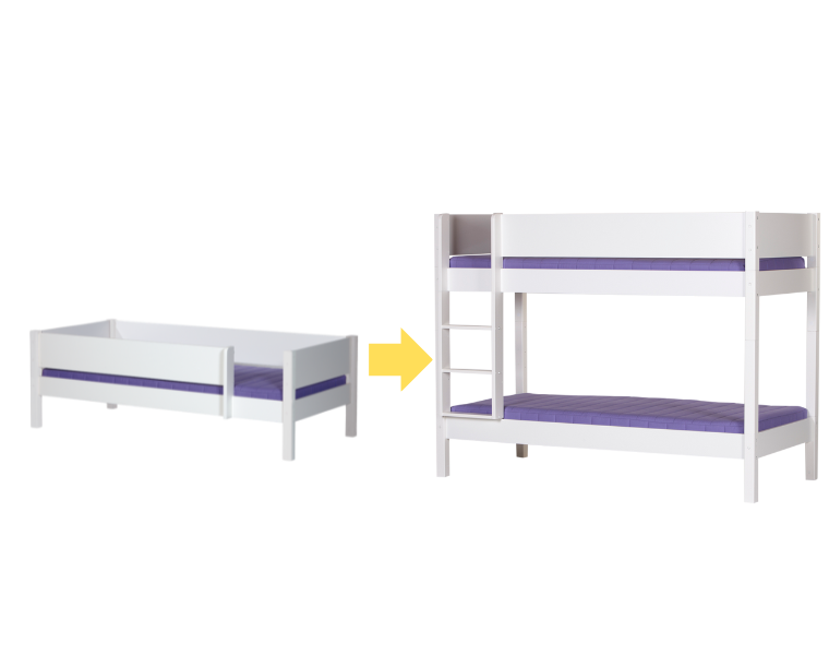 Dieses Set beinhaltet eine Leiter (10100), ein Etagenbett-Montageset (5110), ein Bett ohne Lattenrost (10000) und einen Lattenrost (10910).