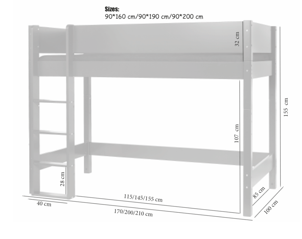 Umbausatz - Bettrahmen für mittelhohes Bett 90*200 cm.