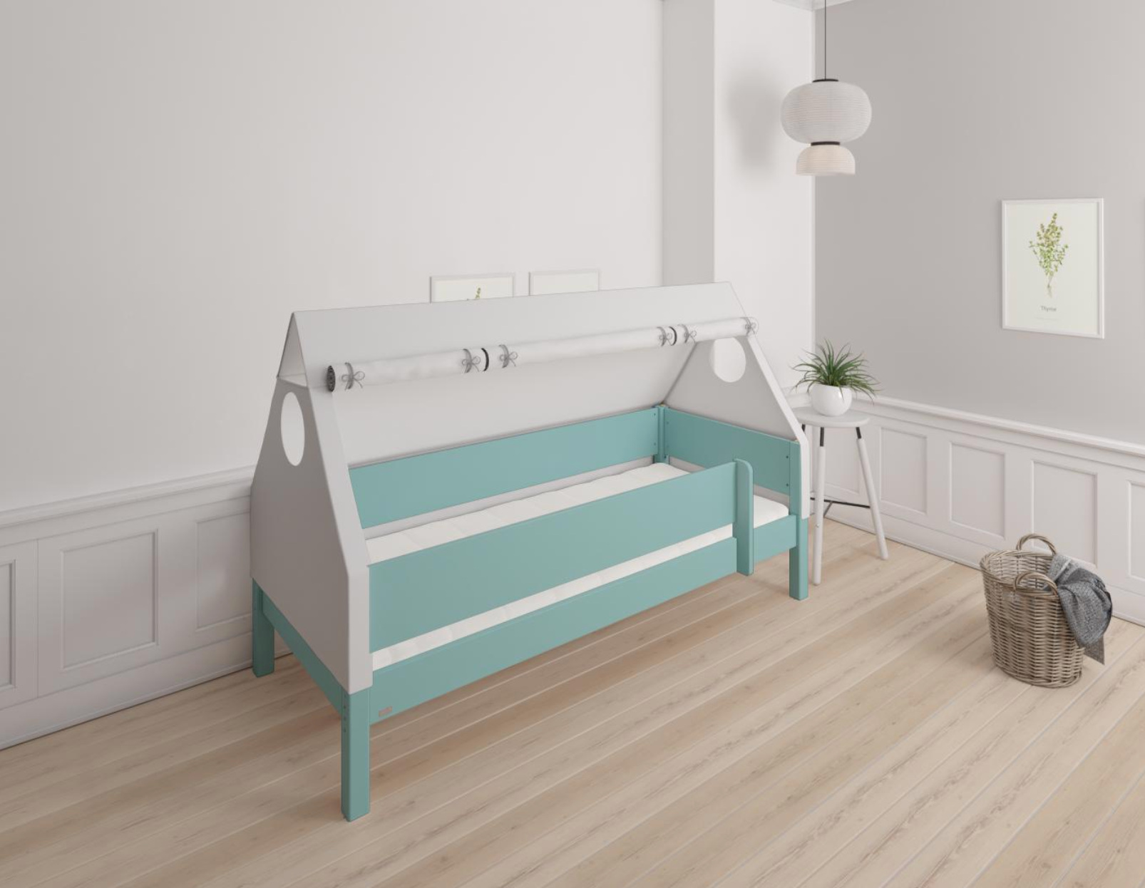 Fulla Kinderhausbett mit Buchenrahmen und Baumwollhimmel - 90*160cm - Mintblau - 42