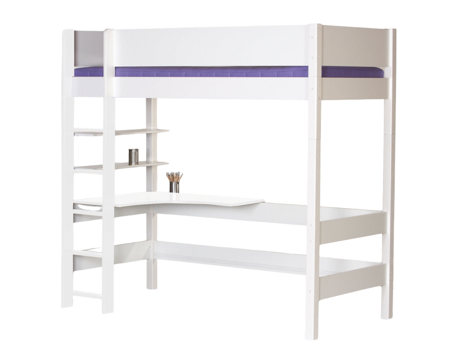 Gefion Hochbett mit Schreibtischplatte und Regalen – genau wie abgebildet | Manis-h