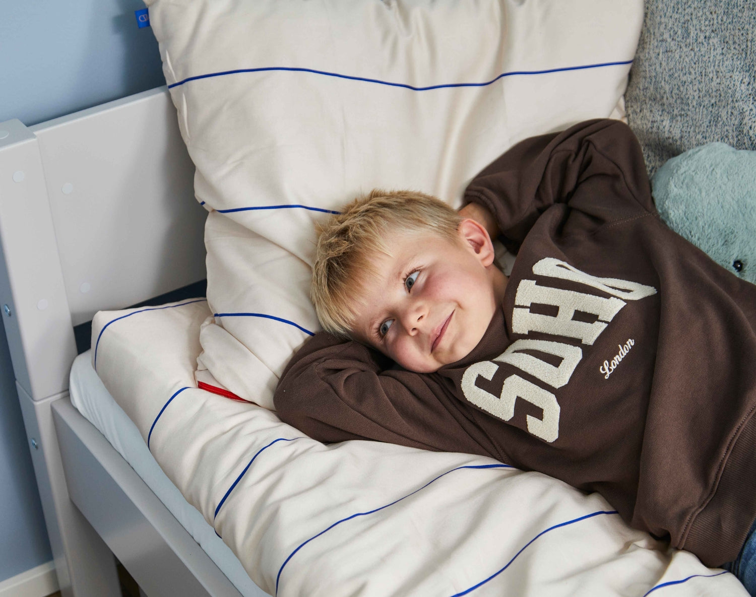 - Achten Sie auf die Matratzenhöhe im Verhältnis zum Bettgitter/zur Bettseite – wir weisen deutlich darauf hin, damit Ihr Kind immer sicher schläft.