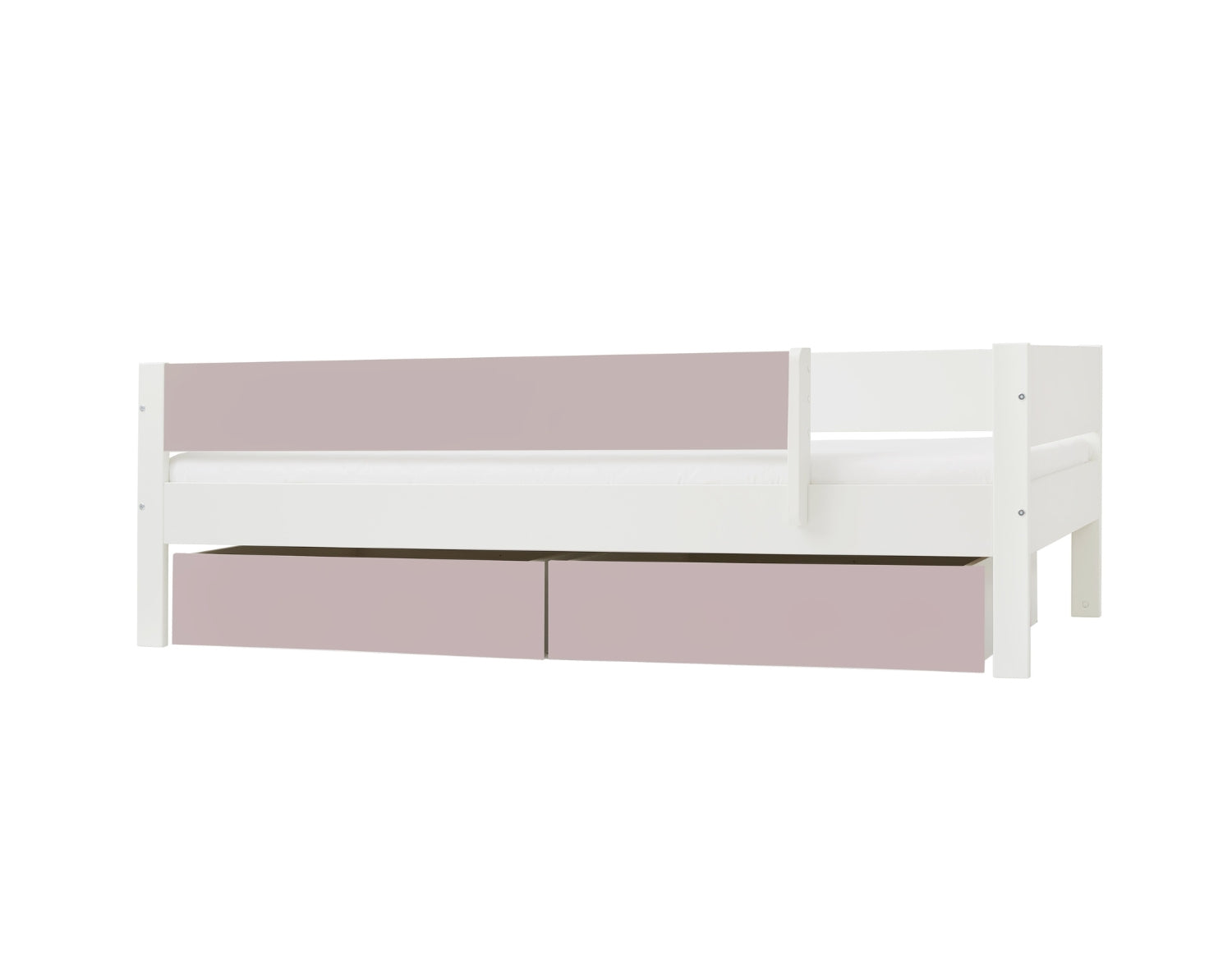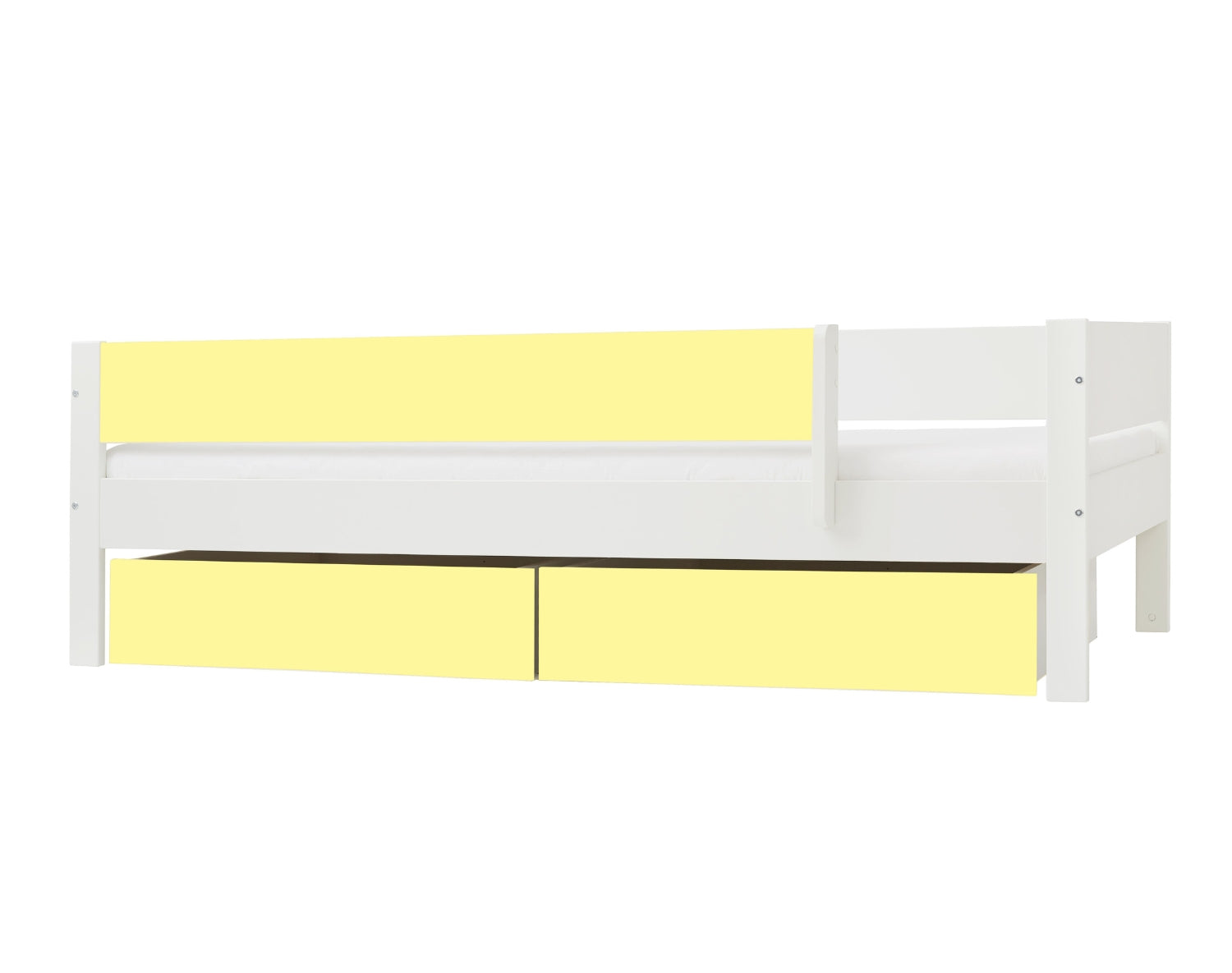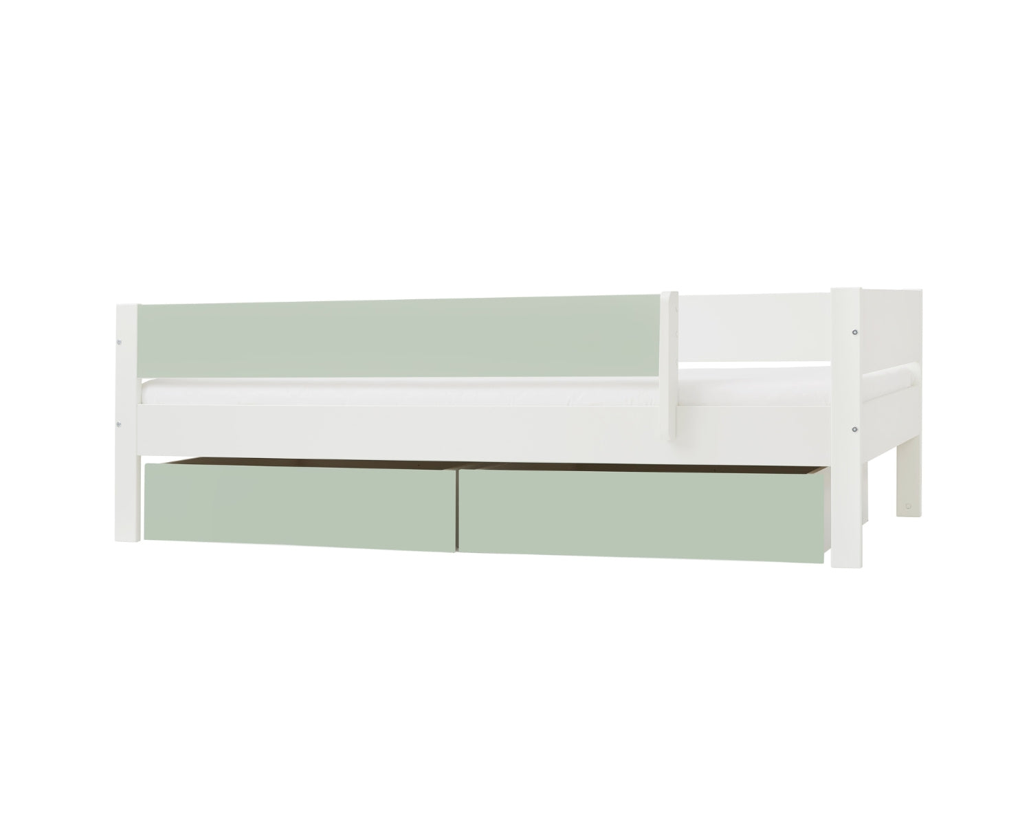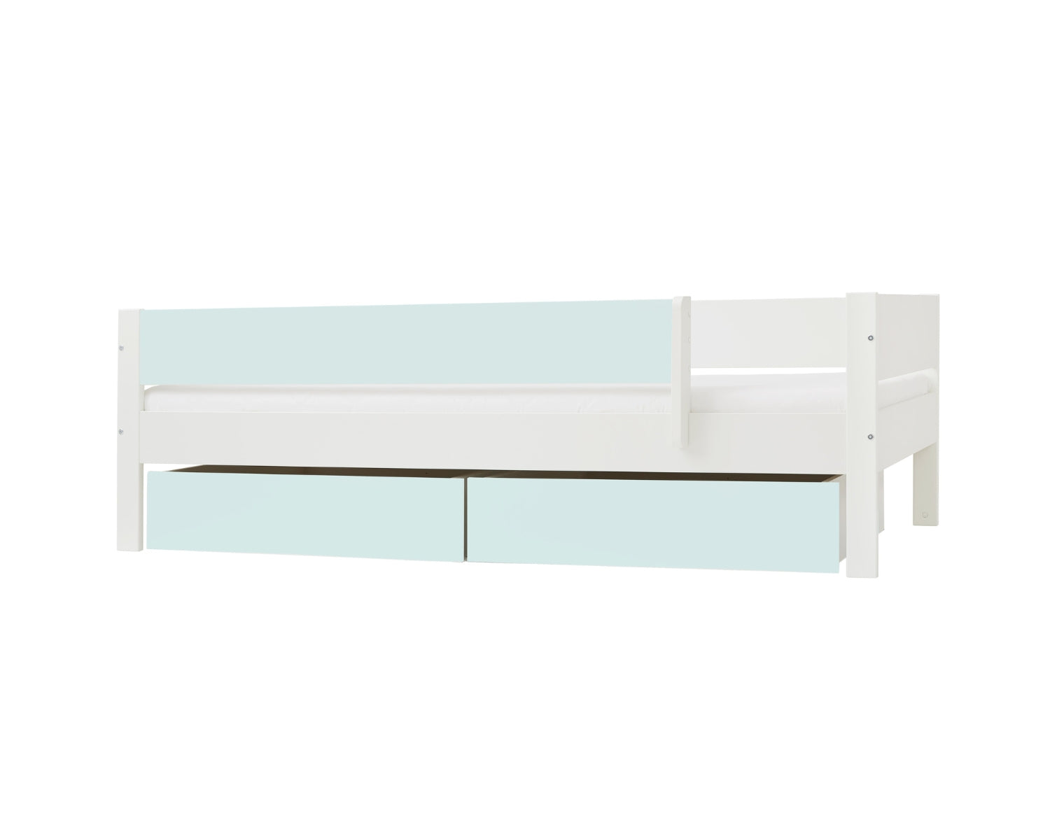 Die Standardfarbe ist Weiß mit der Option einer Frontschiene und Schubladen in den Farben Azurmint -22, Altrosa -25, Sonnengelb -44 oder Hellgrün -54.