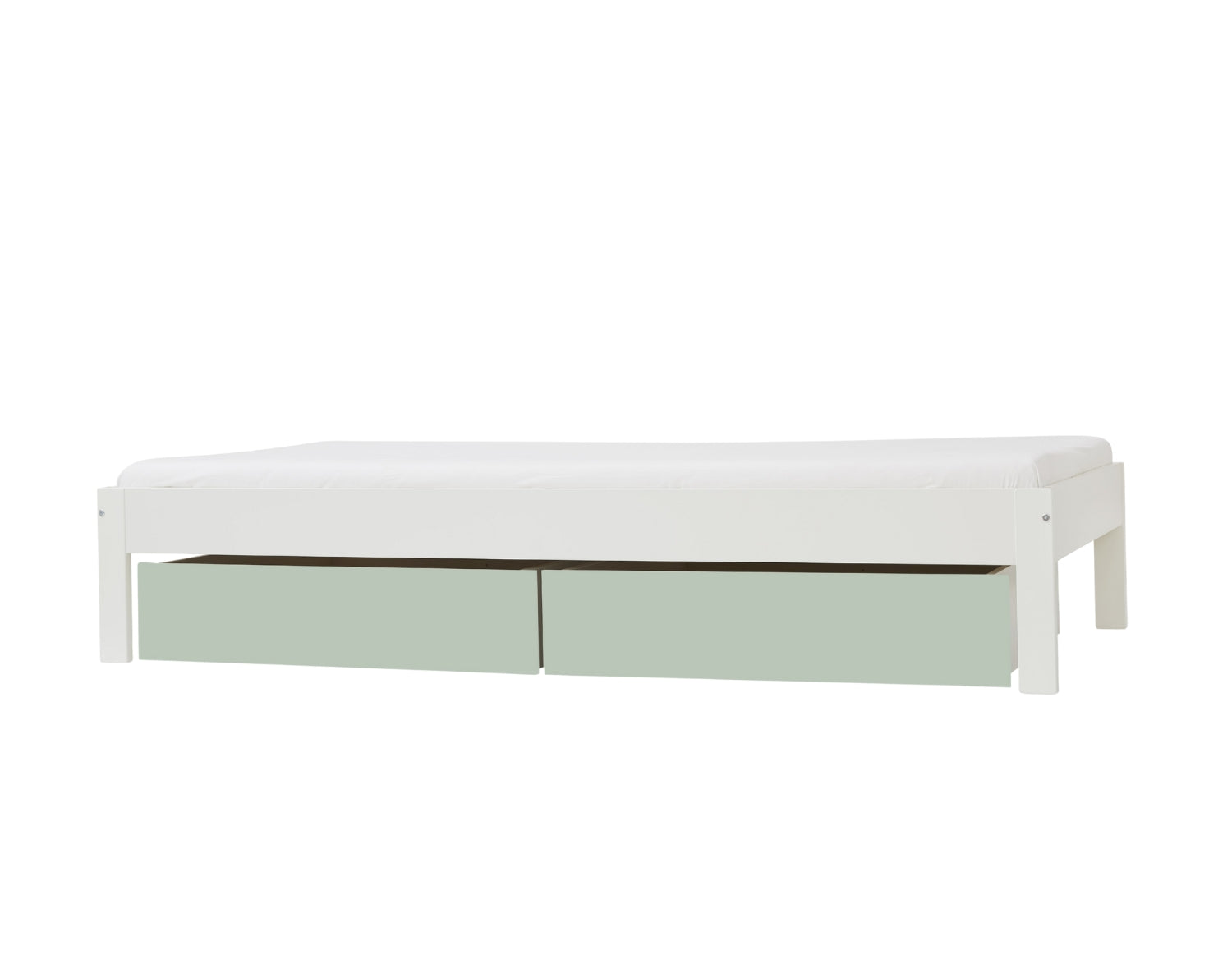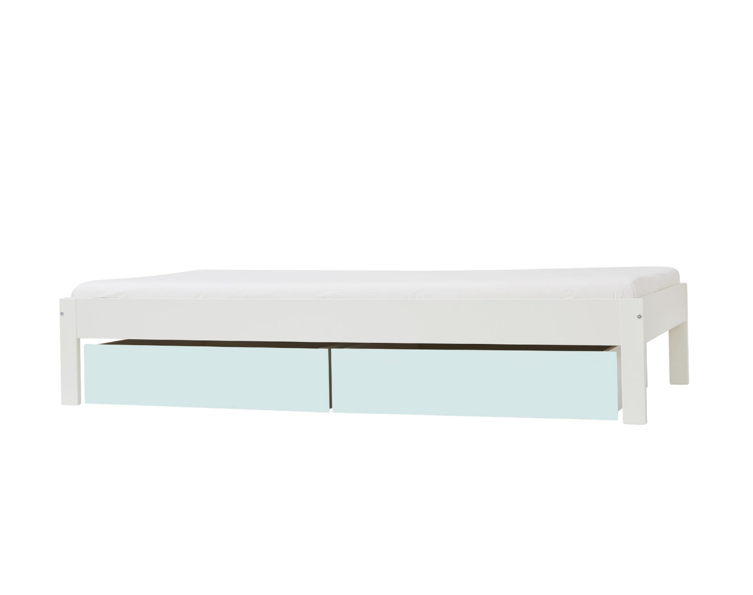 Das Kinderbett ist mit dem Huxie Bettsystem kombinierbar. Huxie ist ein kleines und geschlossenes Bettsystem und Bettzubehör von Manis-h ist nicht mit Huxie kombinierbar – mit Ausnahme von Matratzen, Textilien und Bettkästen.