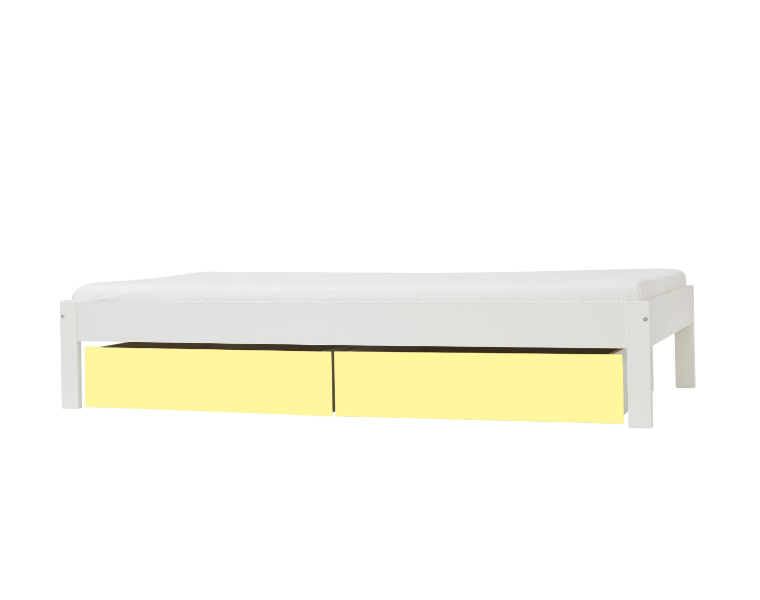 Dieses Bett kann allein verwendet werden, wird aber auch oft als unteres Bett beim Bau eines Huxie-Etagenbetts verwendet.