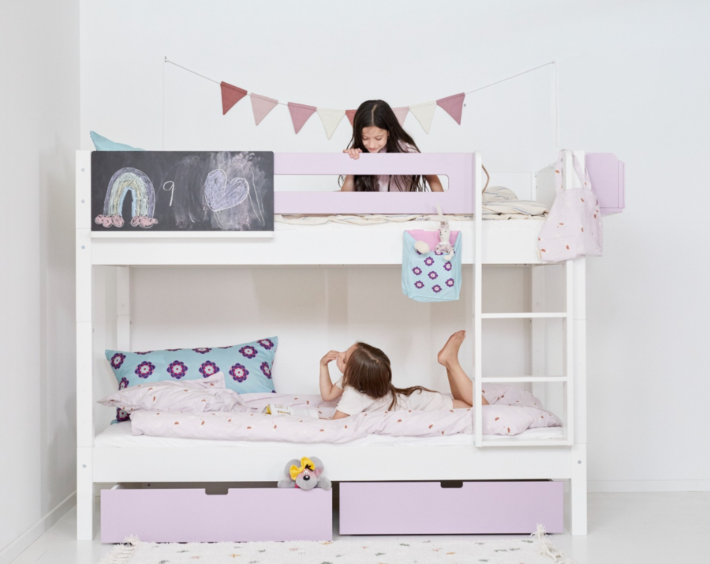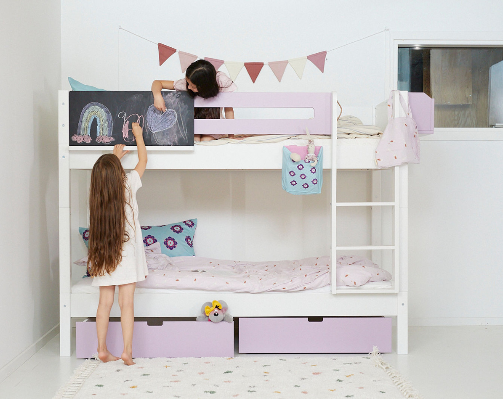 Eine kleine Kreidetafel, die zum Spielen und Kreativsein einlädt. Die Tafel lässt sich einfach am Bettgitter oder Kopfteil montieren – und bietet dem Kind einen gemütlichen Platz für kleine Zeichnungen, Nachrichten oder Spiele am Bett.