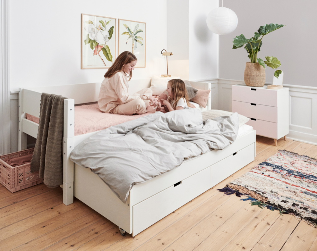 Die geräumigen Schubladen unter dem Bett bieten guten Stauraum für Spielsachen, Bettwäsche oder Bücher und sorgen für Ruhe und Ordnung im Zimmer.