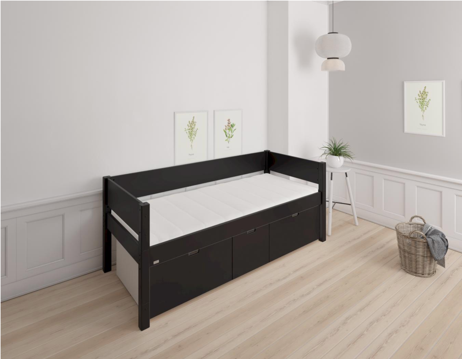Nanna Kinderbett mit hohen Schubladen - 90*160cm - Schwarz - 39