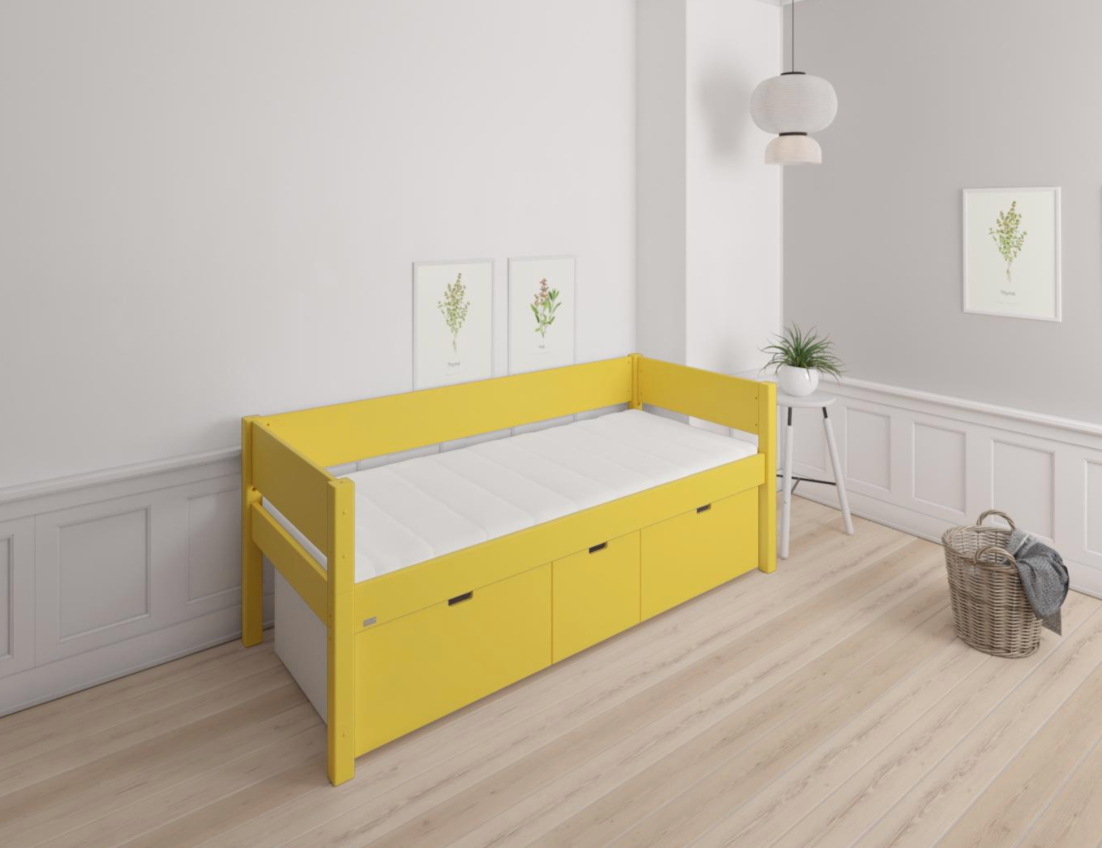 Nanna Kinderbett mit hohen Schubladen - 90*200cm - Currygelb - 43