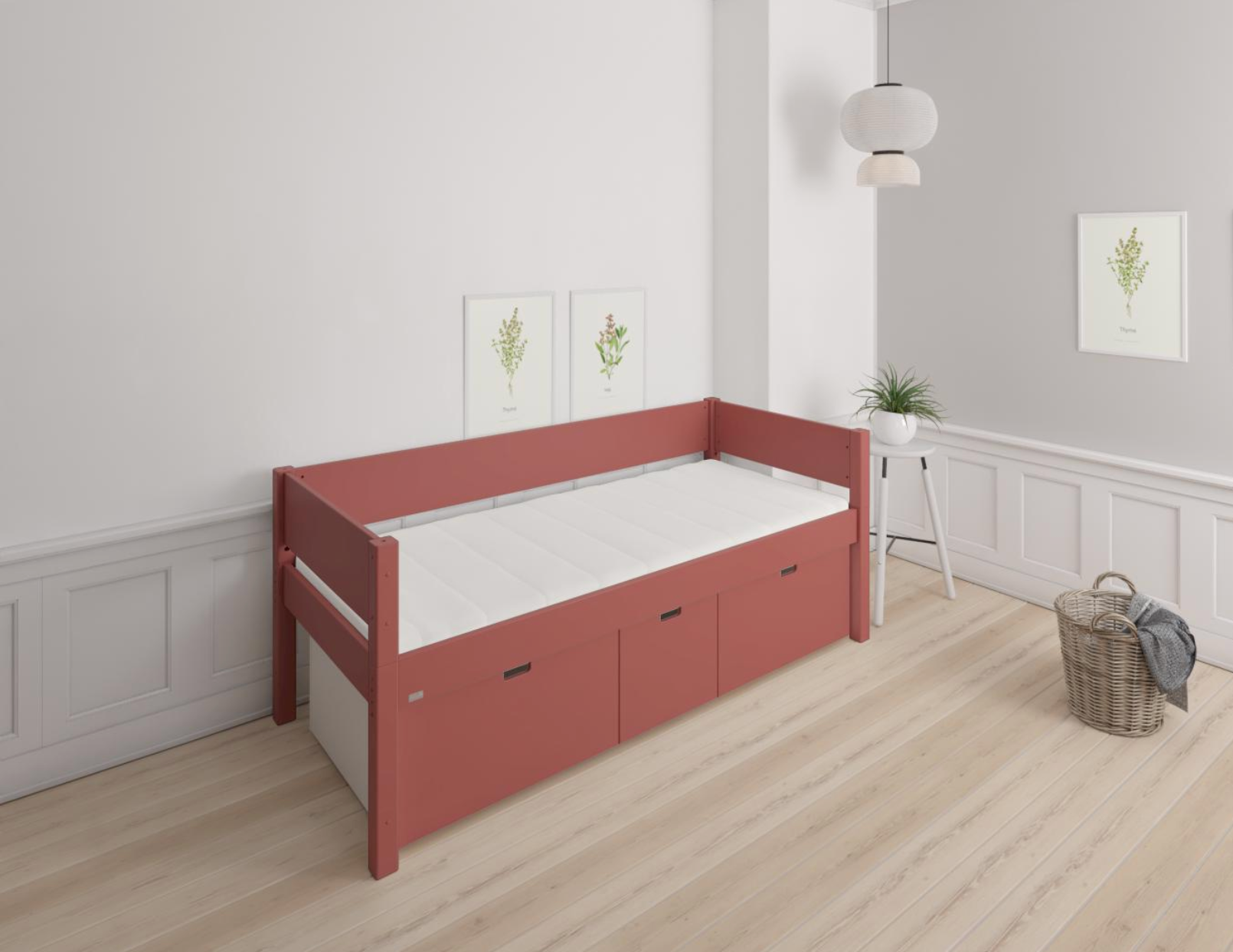 Nanna Kinderbett mit hohen Schubladen - 90*200cm - Rostrot - 35