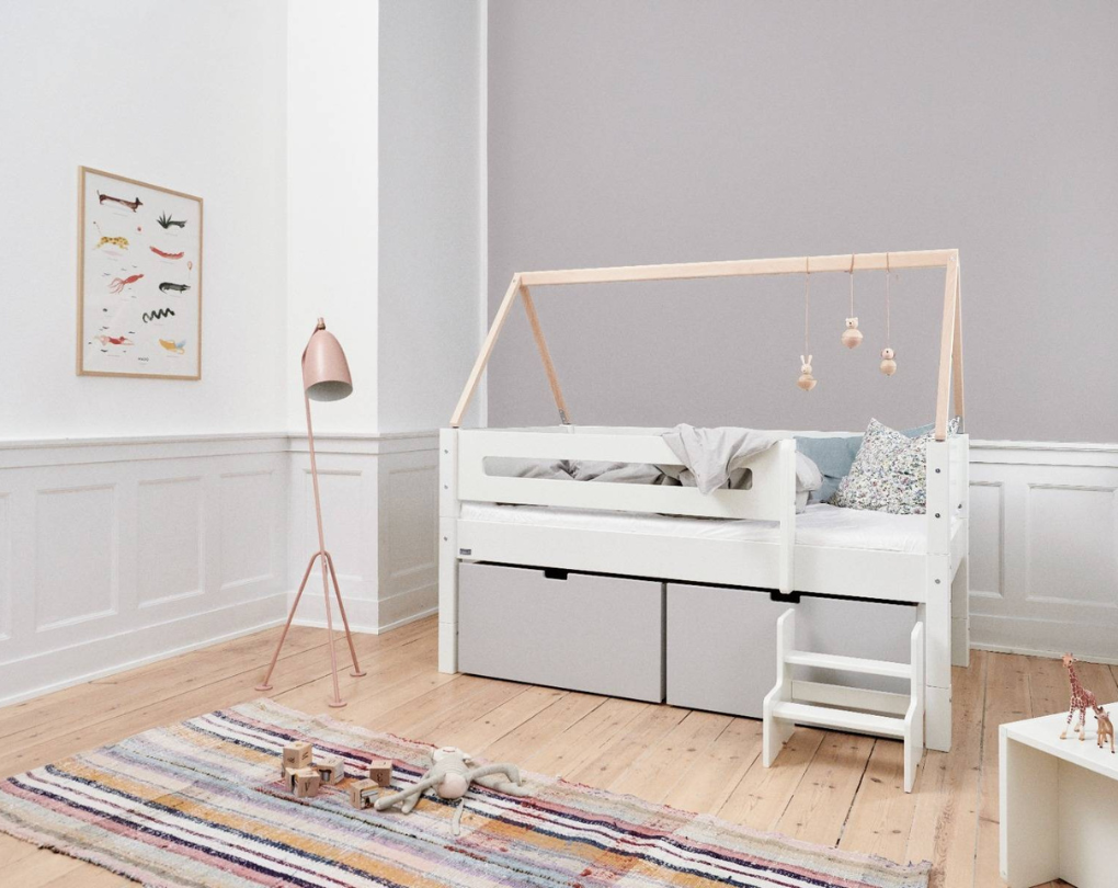 Das Nanna-Bett ist für alle gedacht, die sich ein ruhiges und harmonisches Kinderzimmer mit Platz für alles wünschen, was sonst schnell fließt. Die geräumigen Schubladen unter dem Bett bieten viel Stauraum – perfekt für Bettwäsche, Spielzeug oder Kleidung, die nicht im Weg sein müssen.
