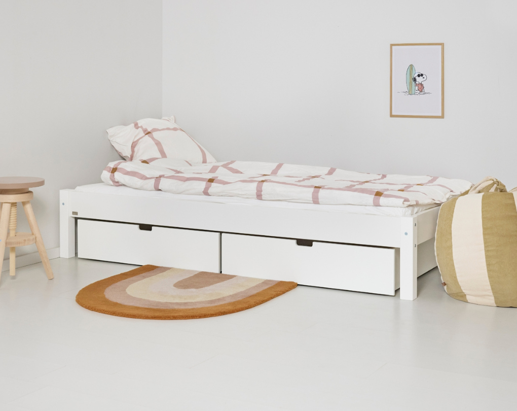 - Achten Sie auf die Matratzenhöhe im Verhältnis zum Bettgitter/zur Bettseite – wir weisen deutlich darauf hin, damit Ihr Kind immer sicher schläft.