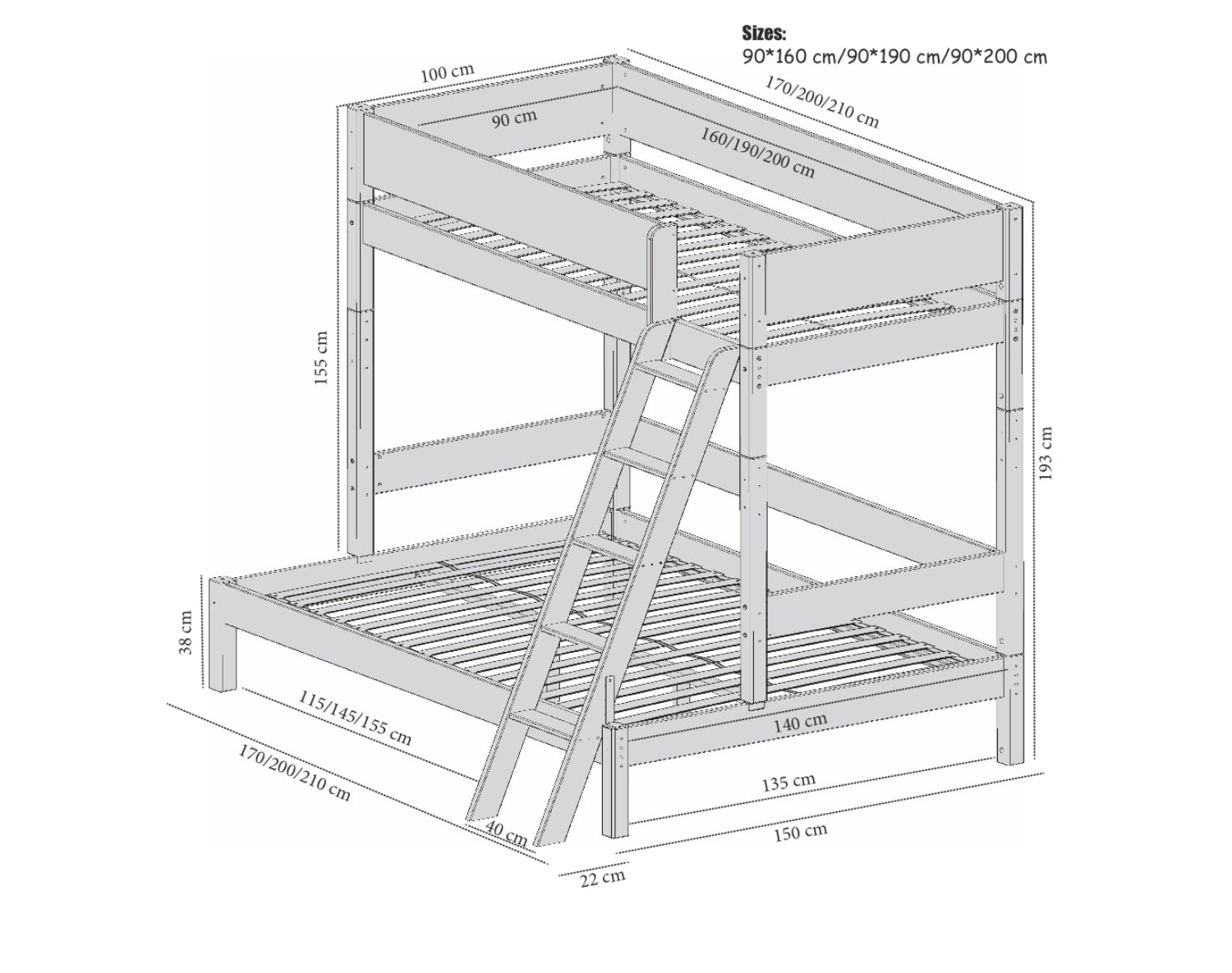 Vale ist mehr als nur ein Etagenbett – es ist ein durchdachtes Familienbett für Kinder und Eltern , geschaffen für den Alltag und besondere Momente im Urlaub. Oben hat das Kind sein sicheres Nest im 90 cm breiten Bett, während unten im geräumigen 140 cm breiten Bett Mama und Papa viel Platz haben. Perfekt für Familien, die zusammen schlafen – oder sich in den ersten Jahren gerne nah sein möchten.